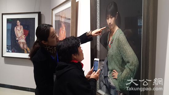 著名油画家冷军作品吸引了参观者鉴赏/杨斌摄