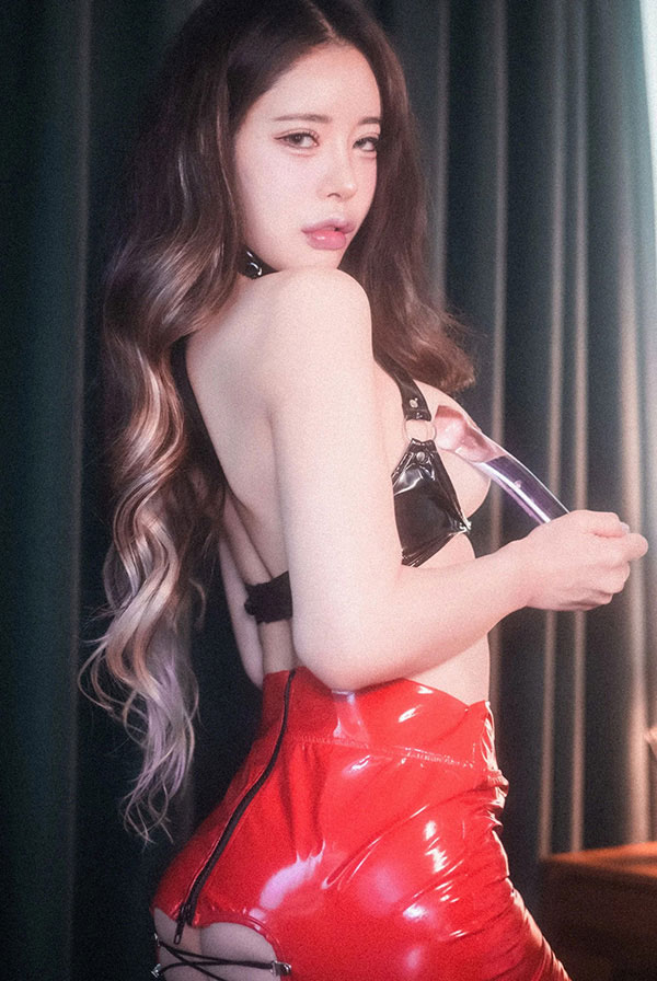 浓妆美女Bunny黑+红露腚皮裙福利图集
