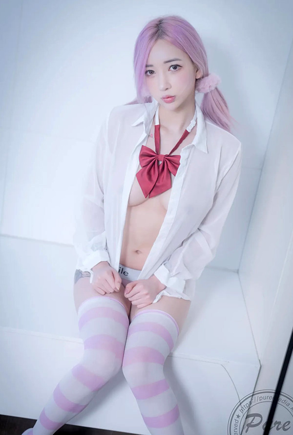 粉色精灵美女Jia居家条纹袜无圣光图集