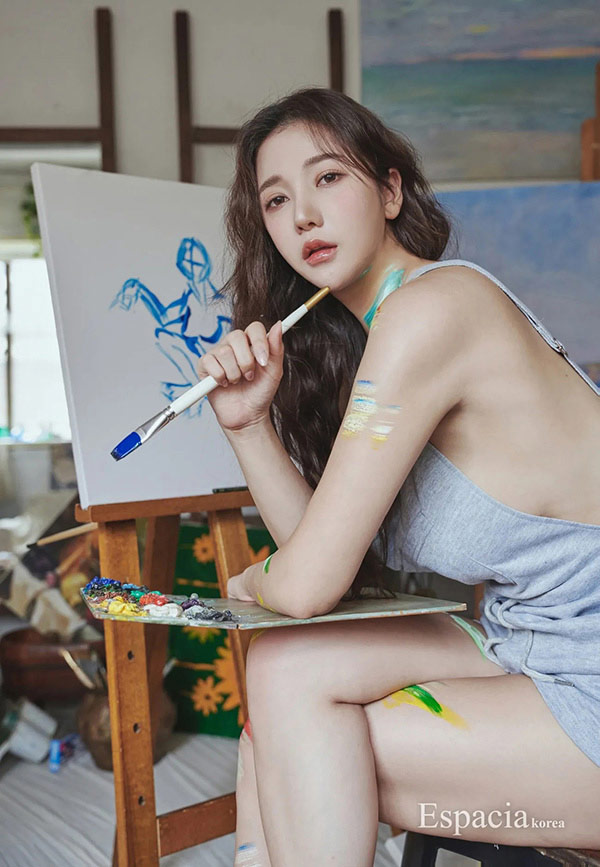 画室里的娇艳美女K.D.L背带裤小秀身材好正点