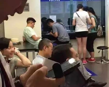 在派出所中,陈冠希坐在椅子上,后背依靠着桌子,伸直双腿,眼睛不时盯着手机和工作人员。一段时间过后,经过民警的耐心调和,两人同意和解,登记完成后便逐一的走出了派出所。