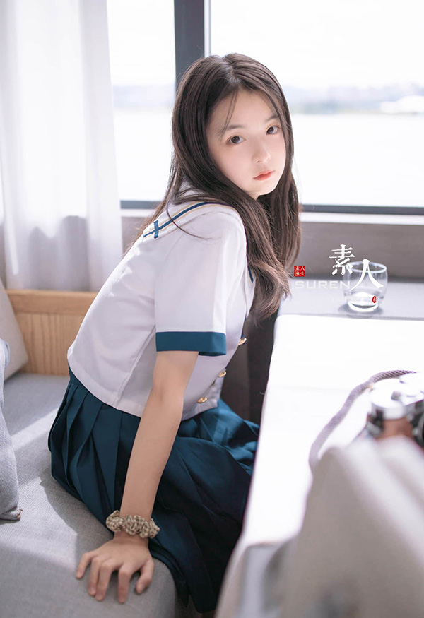 美丽小姐姐Yeon Hwa蓝色格仔小猫咪无圣光