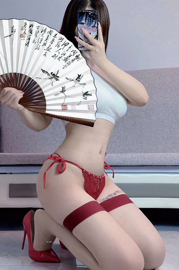 网红美女桃沢樱呀 扇子绝配+红丝诱惑