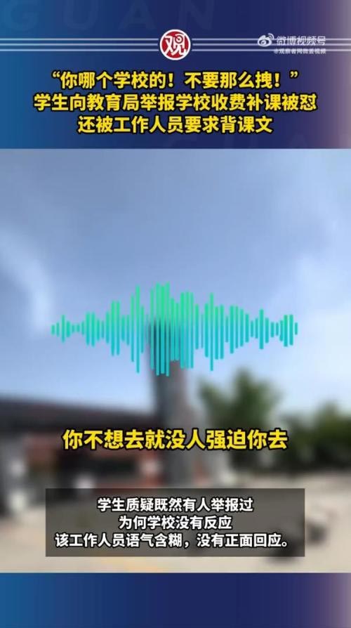 “你哪个学校的!不要那么拽!”学生向教育局举报学校收费补课被怼,还被工作人员要求背课文