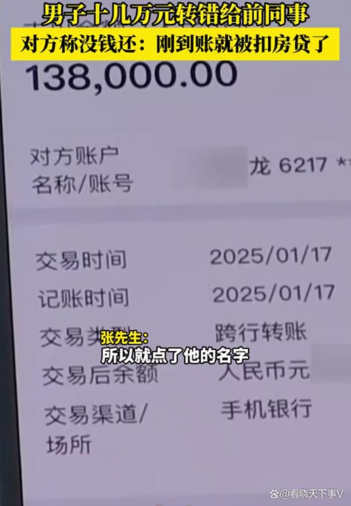 原标题:错误代价太大了!男子十几万转错账对方却称没钱还,钱被还房贷了