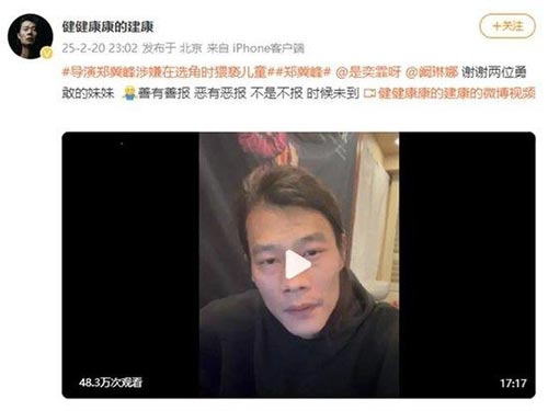 原标题:男演员发17分钟长视频!曝光导演郑某某做过的龌龊事