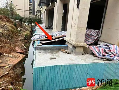 “他应该是想去了解房屋结构和朝向采光。当时踩在了一片彩条遮盖布上,就掉下去了。”李女士表示,出事的这片施工区域是地下室,被业主掘开后,向公共区域推进近一米左右宽度后重新围墙,因此形成了一个天井式地坑。地坑距地面高度约5米深,没有安全防坠网,也没有井盖或钢化玻璃,只有零星木条和彩条布覆盖。“装修现场没有施工标识牌,处于无人值守状态。危险区域没有安全警示标识,只有外围放置了雪糕筒和安全警戒线。”李女士说。