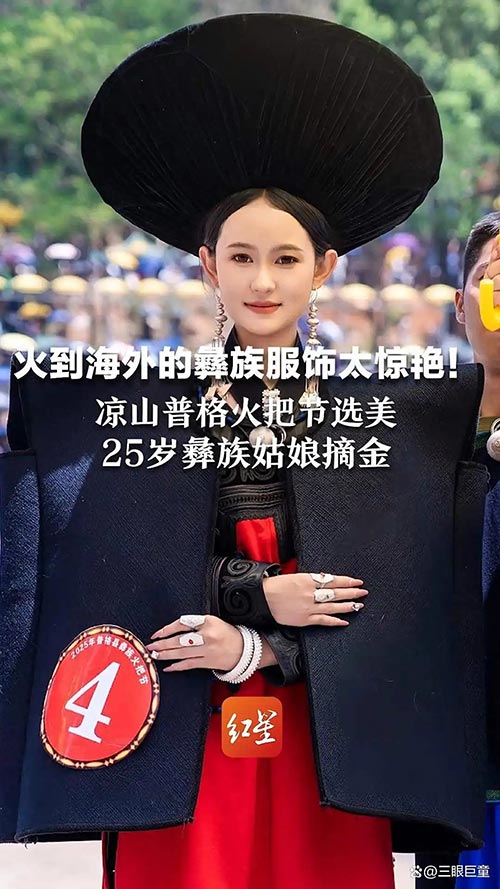 7月17日,一年一度的普格县“阿莫妮惹”杯选美大赛在普格县火把广场篮球场举行。经过初赛选拔脱颖而出的16名彝家青年女子身着绚丽的民族服饰亮相赛场。最终,4号申碧娟荣获金索玛,9号曲木王针莫荣获银索玛、5号蔡世星荣获铜索玛。
