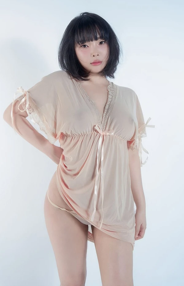 高颜值女神姜仁卿肉粉色睡裙无圣光丰腴美图