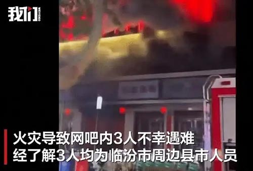据山西省临汾市尧都区委宣传部消息,10日20时左右,尧都区柏松大厦发生火灾,至11日2时许被消防部门扑灭,事故造成大厦二楼一网吧内3人死亡。