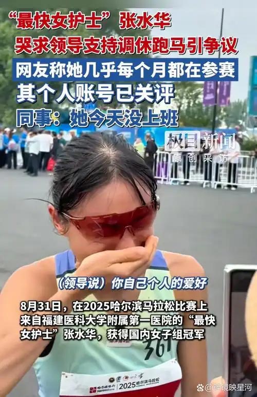 据此前报道,在8月举行的哈尔滨马拉松比赛中,张水华获得国内女子组冠军,赛后其哭诉调休的采访视频,引发热议。
