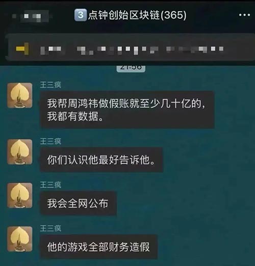 “我帮周鸿祎做假账就至少几十亿的,我都有数据。”他还提到:“你们认识他最好告诉他。”以及“我会全网公布,他的游戏全部财务造假。”