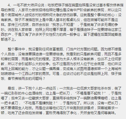 @任:门当户对真的很难,城市与农村的差距已经摆在那,选择了就应该一无反顾,我只能说这个女孩还不如农村人,教养,礼仪,原则,底线是做人的品格,在她身上根本就看不到,连尊重人都不会,真难想想父母是怎样教育成人!