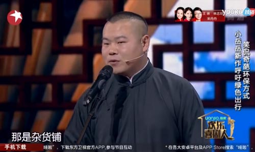 东方卫视《欢乐喜剧人》20160208期第二轮踢馆赛德云社岳云鹏、孙越带来相声《有哲理的人》爆笑解读“哲理”,欢唱《山路十八弯》。一身华服的岳云鹏、孙越开场就抖起“包袱”。小岳岳不改以往“贱萌”本色,吟诗谈“哲学”。本次演出,岳云鹏再次开嗓,一首《山路十八弯》赢得全场共鸣,台上台下欢歌笑语。而全民关注的环保问题,也成了岳云鹏相声的核心。两人趣味解读环境问题,一逗一捧,在嬉笑怒骂中提醒大众,生活中的点滴都与环境有关。一起来欣赏欢乐喜剧人2岳云鹏孙越相声《有哲理的人》现场视频!