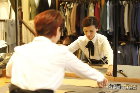 完成一套纯手工定制的西装至少需要假5个人之手,第一道工序就是要从两千多种面料里做选择。“第一次来的客户我们会格外小心,在短短十多分钟里我们需要了解顾客的所有需求:经常坐飞机的人我们会推荐不容易皱的布料;住在北京和住在伦敦的人我们会推荐不同的选择-两个城市的气候差异太大;如果是第一次定制的话,我们会推荐选用保守一些的颜色和经典的款式。” 全英梅说。