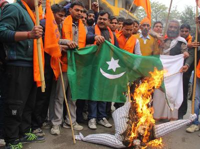 2015年7月为了抗议“巴基斯坦支持的恐袭”,“湿婆军”焚烧巴基斯坦国旗