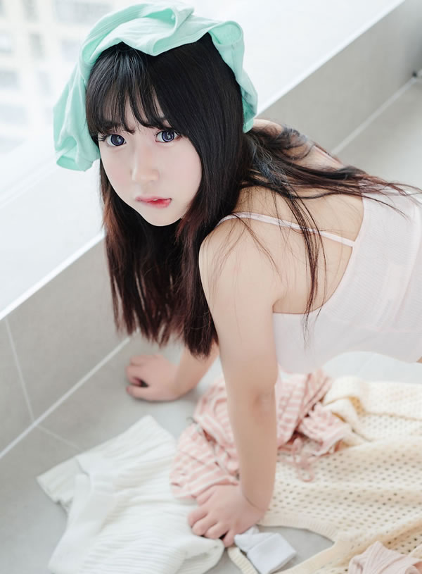 俏丽短发小美女Zia粉色吊带裙尺度福利图
