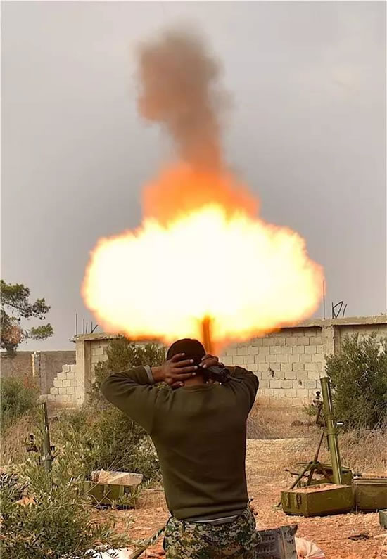 12月11日,在叙利亚北部重镇阿勒颇南部一处营地,亲叙政府民兵武装“沙漠之鹰”向反政府武装控制区发射炮弹。