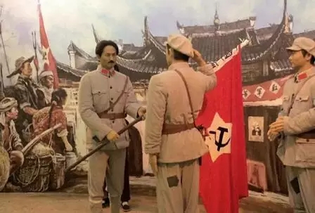 方志敏为中国工农红军第十军授军旗(蜡像情景再现)。