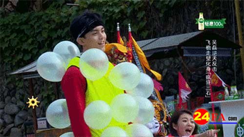 吴磊在“打年兽”环节中,三石三米长腿飞檐走壁,身形矫健走位风骚,在白队重重包围下完美逃脱,身上的气球毫发无损,最终帮助红队率先获胜!