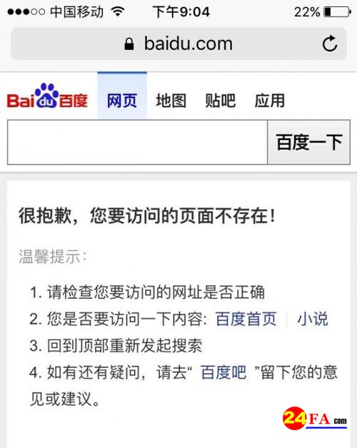 当时小编刚刚在下班的路上刷着手机,突然发现手机百度搜索不能用了!小编本来想搜个“地图”,结果百度手机端都会显示“很抱歉,您要访问的页面不存在!”吓得我又让旁边的朋友用自己手机搜了个最简单的“1”,也是这样!百度这是弄啥嘞?