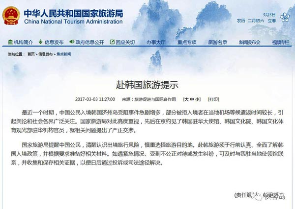 中国国家旅游局称:最近一个时期,中国公民入境韩国济州岛受阻事件急剧增多,部分被拒入境者在当地机场等候遣返时间较长,引起舆论和社会各界广泛关注。所以,提醒中国公民,清醒认识出境旅行风险,慎重选择旅游目的地。