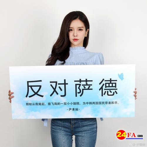 3月13日,韩国女主播尹素婉发微博表立场:“反对萨德”,期盼为中韩两国国民带来和平。尹素婉原是韩国直播平台Afreeca TV的当家主播,以性感的身材与热舞在中韩两国都有不少粉丝。王思聪曾用2000万的薪酬将她挖走。但尹素婉还是结束了她在熊猫TV的最后一场直播在去年12月初,并在微博上向网友们告别,随后重回老东家。