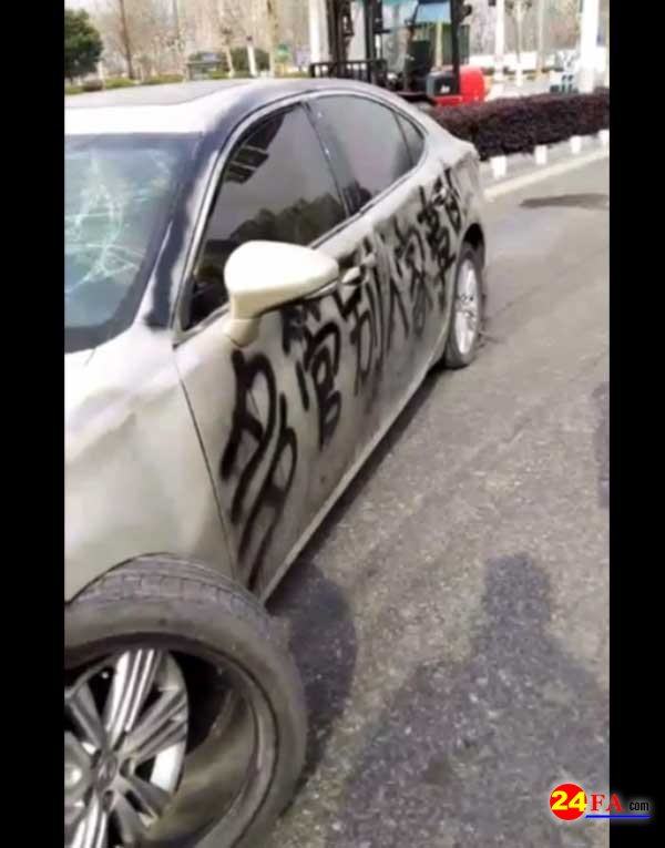 (原标题:雷克萨斯惨遭喷字,还被拖上街)