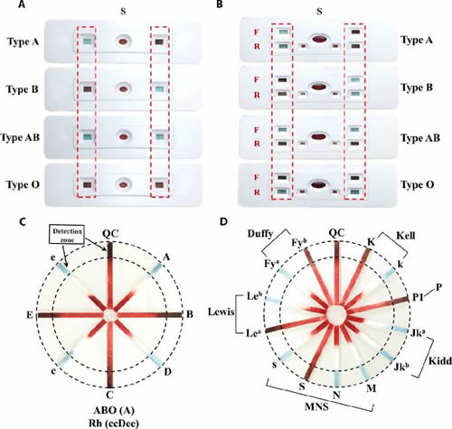 该技术由第三军医大学西南医院中心实验室主任罗阳团队开发。其试纸含有一种特殊染料,遇血时,能够根据血型中抗体不同的作用,显示出褐色及蓝绿色,进而通过比对得出血样的血型。这一过程大约需要30秒,并可以分辨出Rh阴型的罕见血型。而传统方法,通过离心机分离血液进行化验分析,需耗时半小时至数小时不等。
