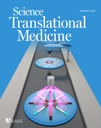 3月15日的《科学·转化医学》杂志封面介绍第三军医大学科研团队的快速验血型研究成果。