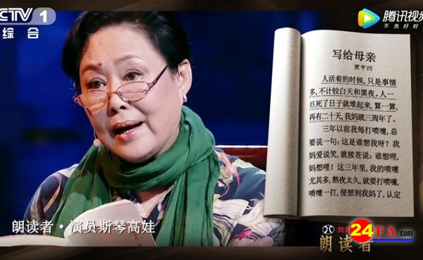 本周六晚(3月25日)CCTV朗读者节目中,斯琴高娃带来贾平凹的《写给母亲》朗读:“现实告诉我,妈是死了,我在地上,她在地下,阴阳两隔,母子再也难以相见,顿时热泪肆流,长声哭泣啊。”老演员的台词功底真是没话说,每个人都跟着斯庆高娃老师的情感进入了那样的场景,连主持人董卿都失控到背对观众掩面哭泣……