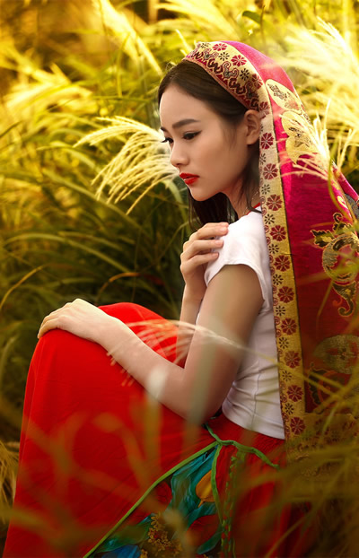 炫红色非主流唯美古典美女田园风光人体艺术写真