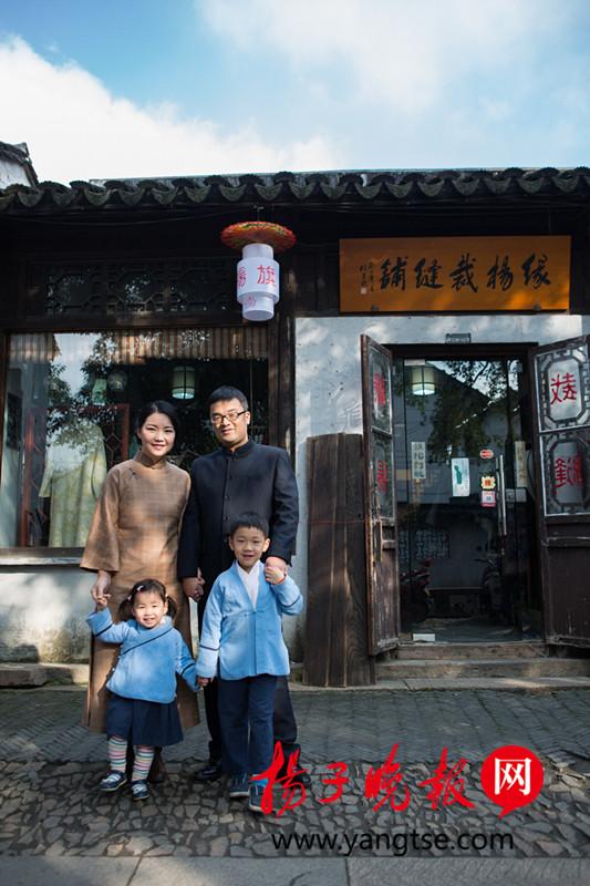 因为对中国传统服饰文化的热爱及对“国民校服”的痴心,杨蓓放弃了大学老师的职位,决定在古朴清幽的平江路开设一家裁缝铺。记者看到,不同于旧时的裁缝铺里挂满了布料,杨蓓的裁缝铺摆放着的是各种款式的旗袍。而这些旗袍基本不用于零售,仅用于展示,顾客可以试穿,试穿满意后由老师傅再给顾客量身定制。据介绍,做一身旗袍要测量26个尺寸,因为纯手工制作,一般定制之后一个月才能拿到衣服。顾客有特殊定制需求,杨蓓也会根据需求给客户重新设计,打样再制作。杨蓓设计的众多旗袍系列里,有一个古法系列旗袍,从款式、面料到剪裁、缝制方法,全方位复原民国旗袍的样子。在妈妈的熏陶和培养之下,女儿“园园”已经变成了平江路上的“旗袍小美女”,为这条古朴的老街增添了新生的气息。为了设计制作出更适合学生穿的“国民校服”,杨蓓不仅在面料上花了很多心思,跑了许多地方寻找适合的面料,而且在裁剪、缝制方面特别用心。记者了解到,杨蓓在“国民校服”系列上可谓下足了功夫,历经三年多时间的构思和设计,光是“国民校服”的设计图稿就有数十套。