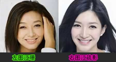 前段时间网络热传江疏影是江珊的女儿,还有的人说是江疏影是江珊的侄女。原因来自下面的一张图片,他们俩个人除了都姓张之外,笑容也超像,大家看一下这张图,左边是江珊,右边是江疏影,看起来真的像母女俩啊。