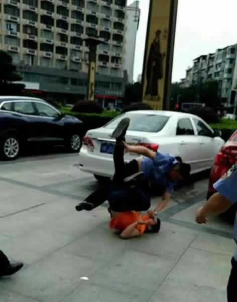 14日下午,网友发布一段视频和多张图片称,南充市顺庆区6名城管殴打一暑期兼职的促销学生,将其踹翻在地仍不停手,导致学生受伤致颅内出血。身穿城管制服的男子团队,围殴一穿商家T恤的学生模样年轻男子,一名城管飞脚将年轻男子踹倒在地上。
