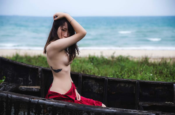 极品柚木之半裸吊带红装无圣光人体艺术套图