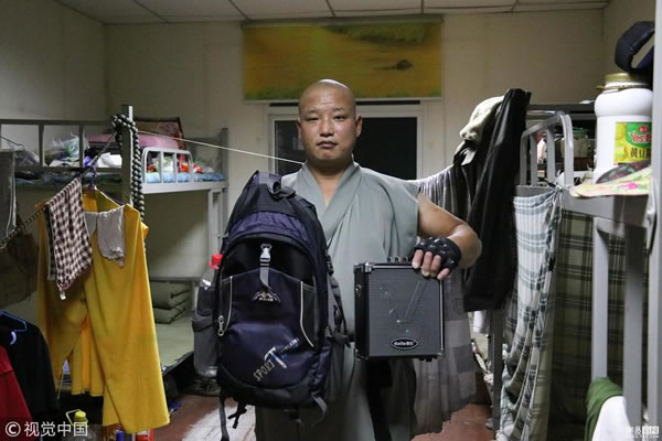 马志军说:“我还不是真正的出家人,我的师傅是五台山的一位住持,他让我再锻炼几年基本功,才让我正式出家。于是我现在就在家修行,每天穿着武僧服,锻炼基本功。”