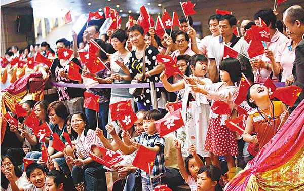 国歌法不影响市民的日常生活。图为大批市民在奥运祝捷活动上,起立挥舞国旗和区旗为港队欢呼。来源:香港《文汇报》