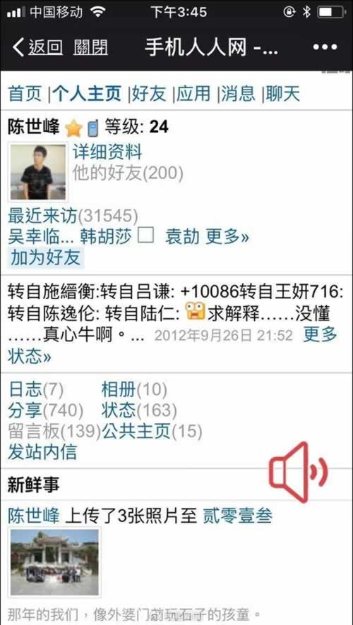 陈世峰人人网账号。手机截图