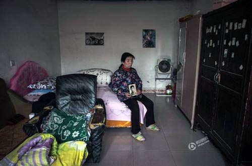 湖南株洲青霞社区桎木组是中国著名的老工业基地——清水塘工业区,其中分布着冶炼厂、化工厂、洗煤厂和电厂等数十个重污染型企业。桎木组是个寡妇村,男人都得癌症死了,至于为何癌症高发,包括社区领导在内的当地居民普遍认为,环境污染是罪魁祸首。图为刘媛玲抱着丈夫的遗像坐在房间里。刘媛玲,67岁,株洲市石峰区桎木组村民。丈夫刘传斌,1995年因肺癌去世,时年51岁。