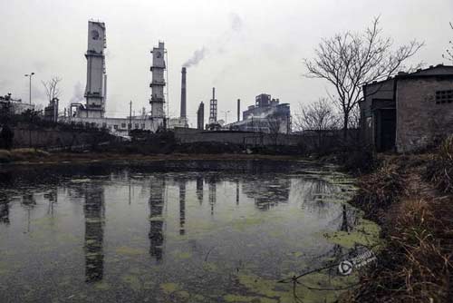 湖南郴州“寡妇村”被密密麻麻的烟囱包围着,烟囱排放着气体。