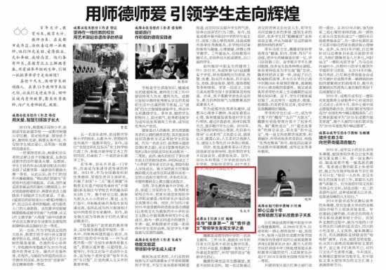 提到朱成军老师,人们会想到他参与开设的淑雅女子学堂和儒雅男子学堂,不仅引来央视新闻频道报道,还切切实实提升学生的气质,培养出良好的行为习惯。如今,他是成都市蜀兴职业中学的学生处主任、国家三级心理咨询师,也是成都市排球优秀教练员,在学校同时承担体育与健康、心理健康、消费心理学教学。工作量虽大,但他做得可圈可点,还培养出大批成绩优、出口强的学生。