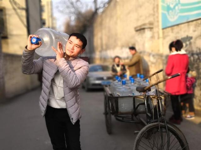 “我这俩侄儿有智力缺陷,送水时怕娃乱跑,只能用绳子牵着。”1月9日,山东济南街头,21岁菏泽小伙逯松涛扛起桶装水开始爬楼送水,虽是冬天,他的额头却一直冒汗。逯松涛的哥嫂和俩侄儿都是智力残疾,唯有一个小侄女聪明乖巧,却患上白血病。为给侄女筹钱治病,他带着哥嫂和俩侄儿白天送水晚上卖米。怕侄儿乱跑,只得在孩子腰间系上绳子。