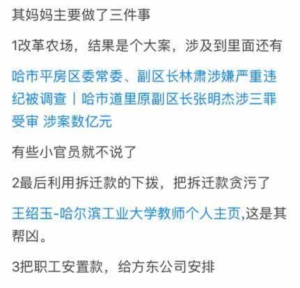 而这条微博,就是关于她母亲涉嫌贪污3.5亿,被免职的内容: