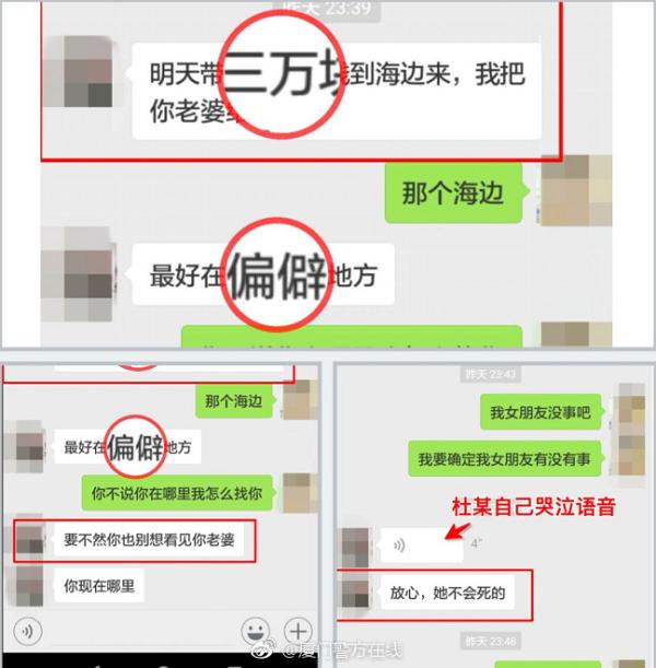 询问宋涛一些基本情况后,警方查看了宋涛和“绑匪”的聊天记录,发现双方一直在聊天,中间也没有间断。晚上10点多,宋涛又收到“绑匪”要求他第二天带3万元到海边交易的通知,还发了一段杜琪哭泣的音频。