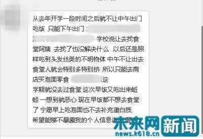 (原标题:食堂吃出蚯蚓、蜘蛛?徐州某学校食品卫生问题由来已久学生求放过)