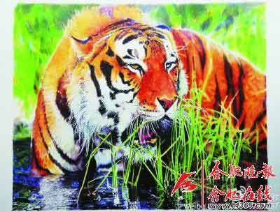一年半的时间,程维前画出不少作品,其中一幅《虎》最让他满意。虽然整幅画只占一张4开纸,可程维前却足足花了两百多个小时,“一个暑假全部耗在这张纸上面了。”黄黑相间的调色没有难倒程维前,但老虎嘴巴上几根白胡须却让他烦心不已。“胡须是白色的,只有留白处理,这就关系到其他布局”。