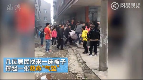 江苏泰州一楼房起火12岁妹妹跳楼逃生视频截图