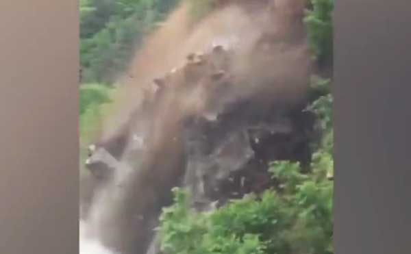 实拍吉林长白连降暴雨 致山体破裂塌方