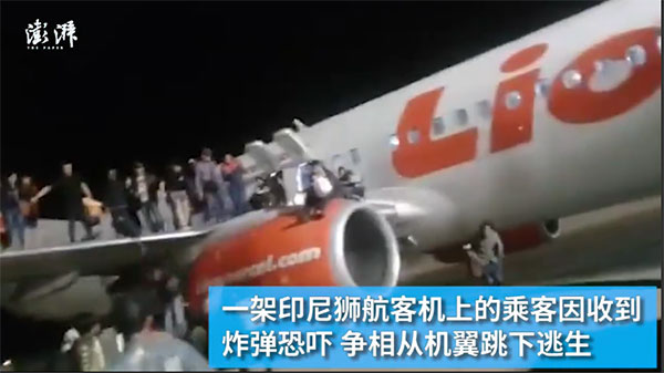 一名印尼狮航的乘客谎报机上有炸弹乘客恐慌跳机逃生视频